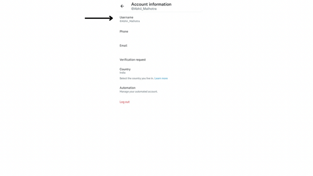 Now go to Account information. In this menu, you will see the option of ’Username’ with your current username written below on it. Tap on it.