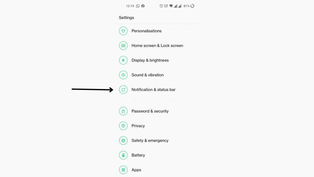 In the settings, things may vary depending on what OEM’s smartphone you have as every company has placed this option under a different section. The screenshots you see here are from a OnePlus Nord 2. Most of the times, the option resides under the Notifications settings on almost all devices. On OnePlus devices, you can now tap on ’Notifications & Status bar’.