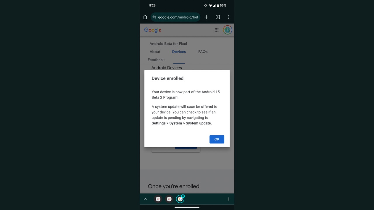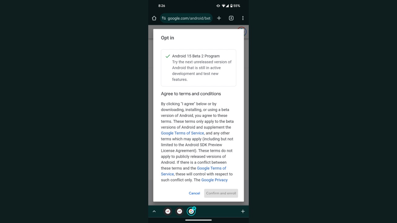 Go to the Android 15 Beta for Pixel devices opt-in website and login with the same Google account you have on your Pixel phone.