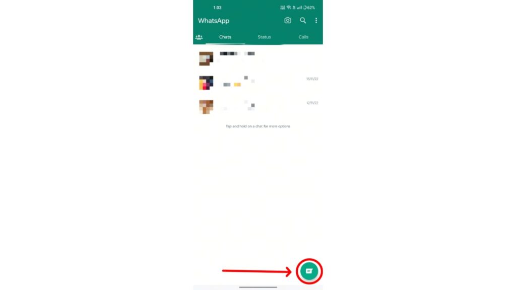 Open WhatsApp and tap on the Floating message button present at the bottom right.