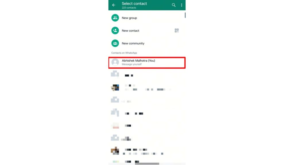 As the feature is rolling out in a phased manner, you might get it in a few days. But if you have already got it, you will be seeing your ’WhatsApp Name’ chat with the status ’Message Yourself’ pinned at the top of the list. Tap on it.