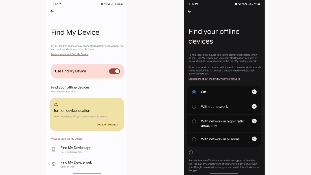 If the feature has been rolled out on your device, you should see an option called ‘Find your offline devices’. Once you click on it, choose the option that suits you best in terms of how you want to participate in the new Find My Device network.