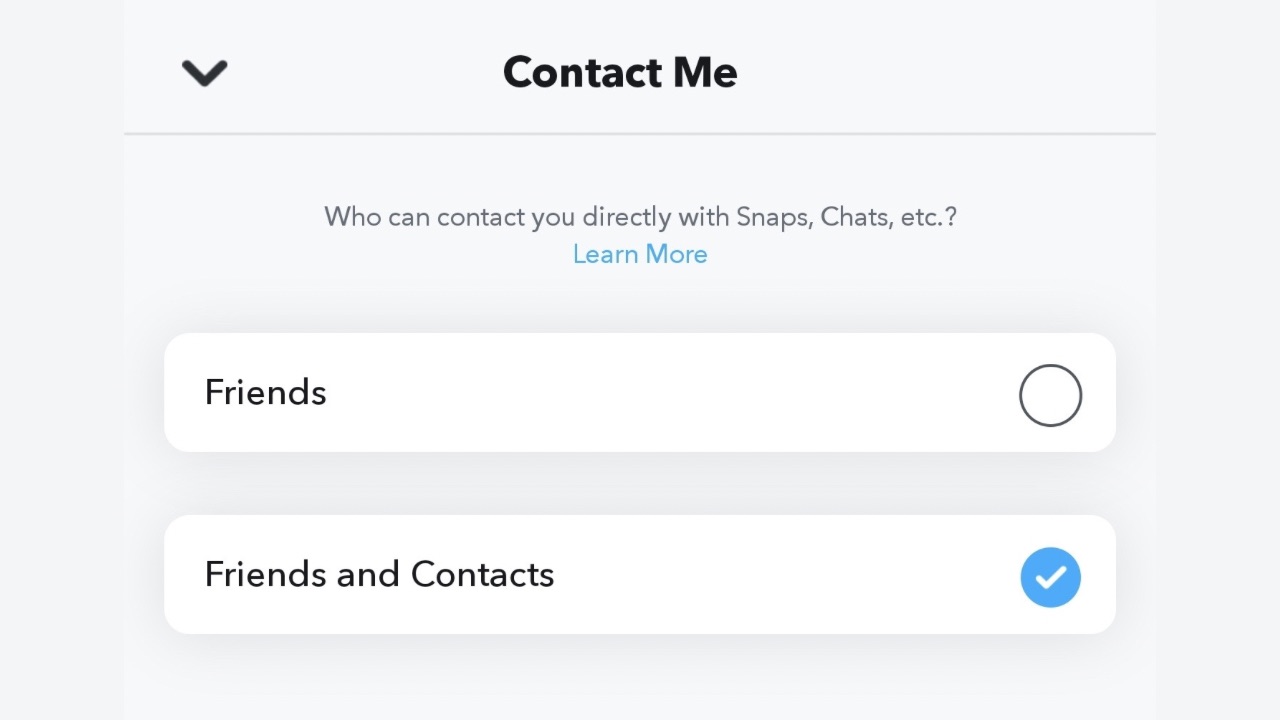 Step 4: Choose ‘My Friends’ to restrict contact to people you’ve added and not all your contacts who are on Snapchat.