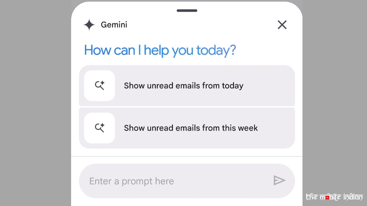 The new Gemini button (denoted by a star) appears at the top-right, next to the search bar in Email section. Tapping on it brings up a Gemini box, wherein you can ask questions to the chatbot related to your inbox or even search for mails that were sent to you years back.