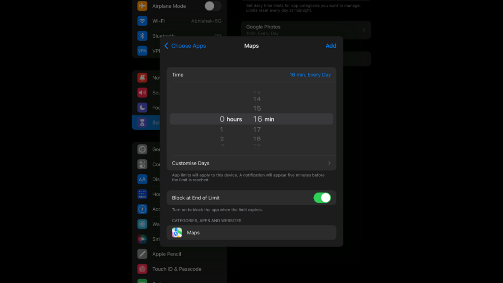 Click on Add. Now whenever the time limit expires, the app will lock and will require the passcode you entered to unlock the app. You can ask for more time limit and then click on Enter Screen Time passcode so you can open the app.