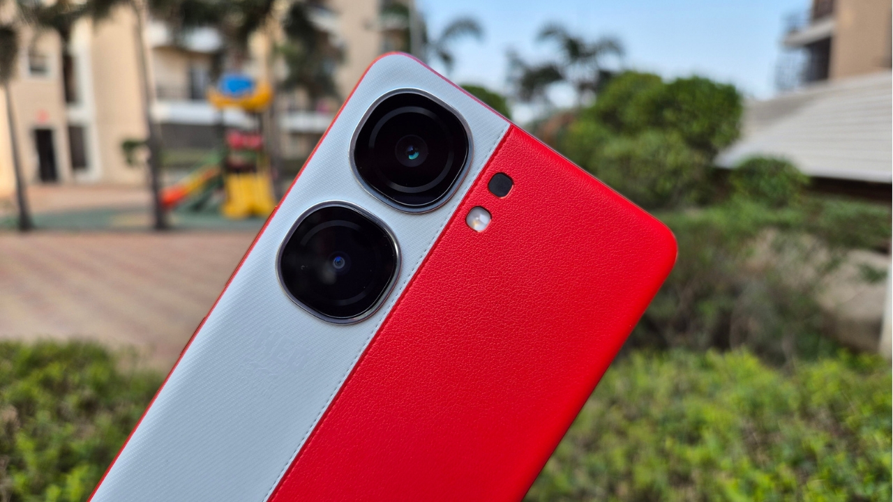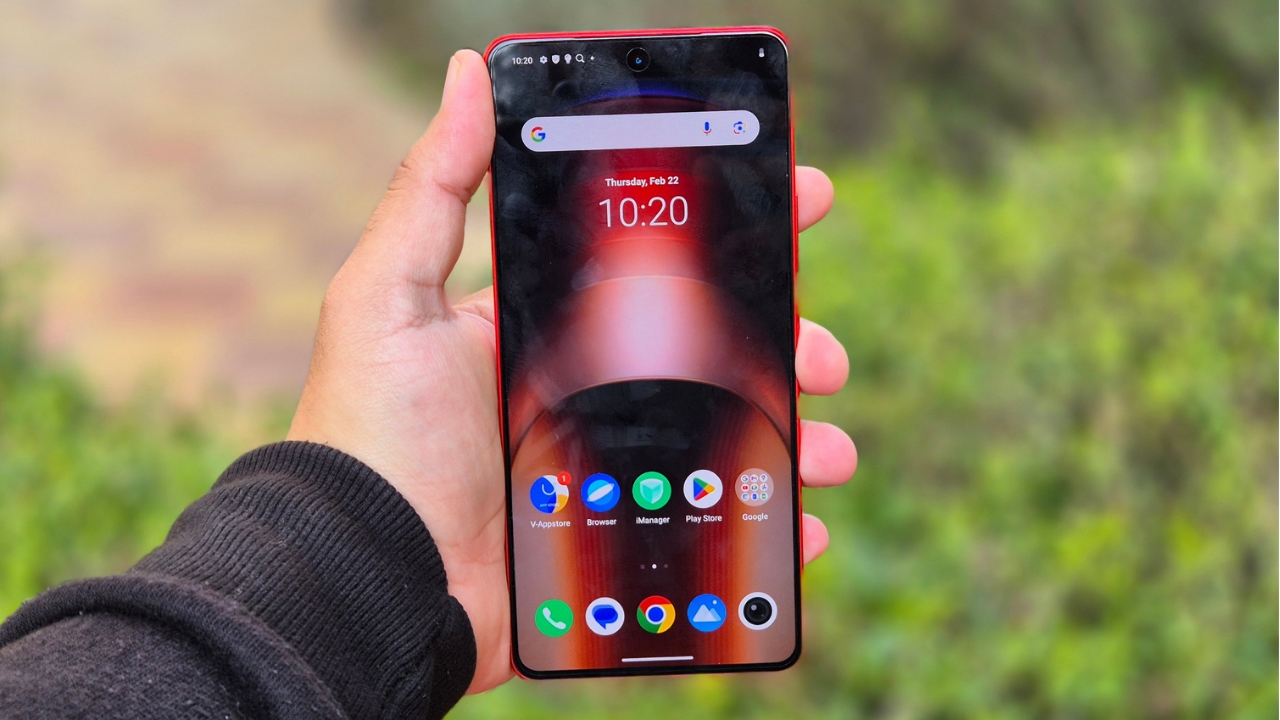 The iQOO Neo 9 Pro comes in two shades, and definitely, the Fiery Red colour looks more attractive than the black, which has a minimal approach. The red one, which is also the model we have with us, has a bright red flat frame with buttons on the right that have a tactile feel to them when clicked. The rear has this vegan leather two-tone finish, which attracts a lot of eyes in the public.
