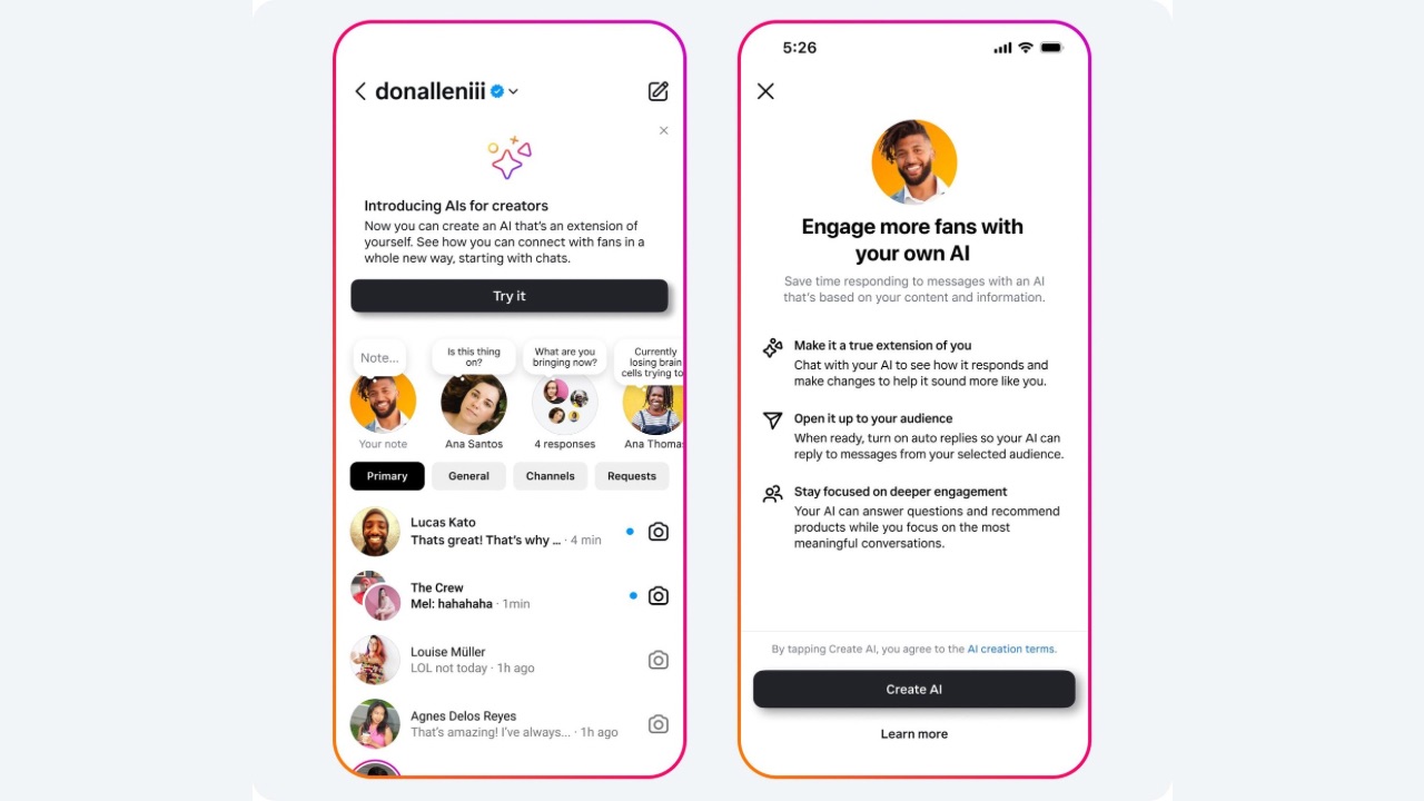 Creators like Chris Ashley, Violet Benson, Don Allen and Kane Kallaway have already created their own AIs. You can check them out by tapping the Message button with the golden star icon on their Instagram profile (accessible via mobile only).
