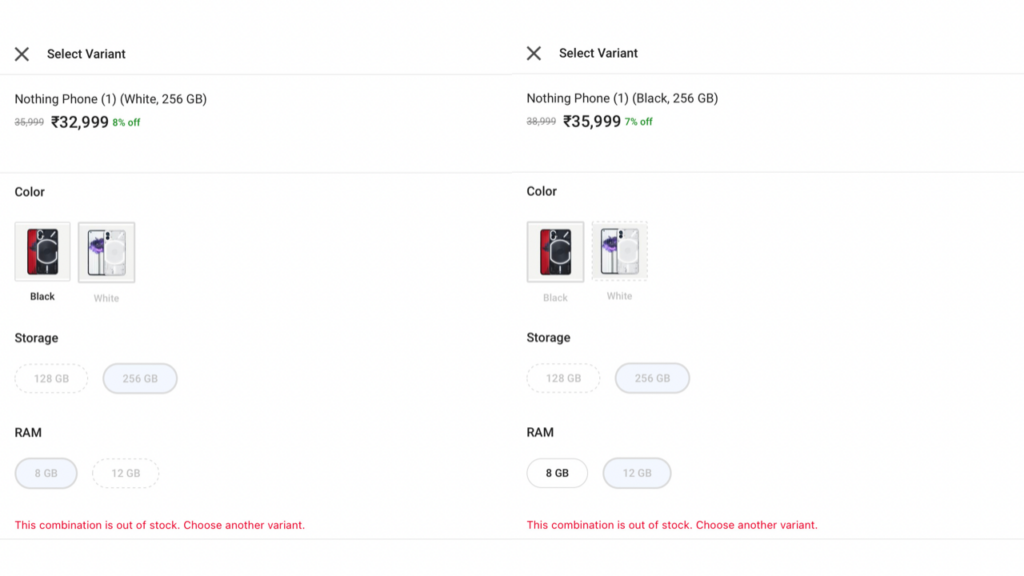 Since the invite system for the pre-order pass began, Nothing has stated that those customers who pre-order the Phone (1) will be able to order the model of their choice on July 12, 9PM via Flipkart in India. However, at 9PM yesterday, majority of the models were being shown as out of stock. While some people were able to order the White model with 256GB storage, most weren’t able to as the variants soon went out of stock.
