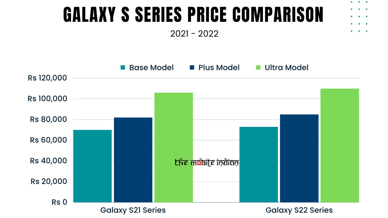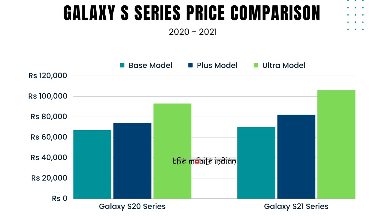 For the base model, the price was increased by Rs 4,000 from Galaxy S20 to Galaxy S21, while for the Plus variant, the price went up by Rs 8,000 for the base variant. The price for the Ultra model went up by a whopping Rs 12,000, making it the first time when the price of a Galaxy S series smartphone went above the Rs 1,00,000 mark.