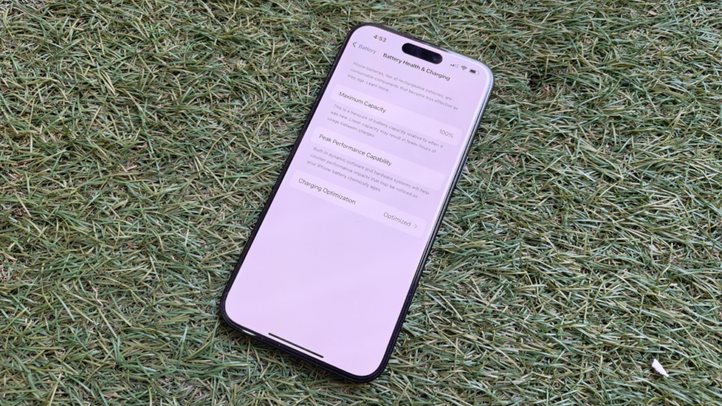 The iPhone 15 series brought a major change by replacing the Lightning port with a USB-C port. However, the charging speed remains the same as that of the iPhone 14 series model. The phone’s maximum charging speed is capped at 27 watts, which means that using a power brick that supports a higher wattage won’t make the phone charge any faster. The battery life of the 15 Pro Max can last for a day and a half to two days, depending on how you use your phone.