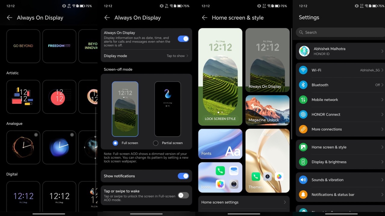 Next, there’s a good amount of customisation on offer, such as various lock screen styles and the full-screen AOD, among other AOD clock styles. However, the full-screen AOD cannot remain turned on at all times like in iPhone 15 Pro and the Galaxy S24 series. Instead, it shows up for a few seconds after you turn off your screen and then turns off. Fortunately, other classic AOD clock styles can stay on AOD at all times like how AOD should work.
