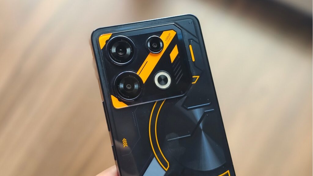 Infinix has opted for a flashy design with the GT 10 Pro with plastic sides. Thankfully, the back has glass finish and the design is actually better than the standard minimal ones we usually see at this price point.