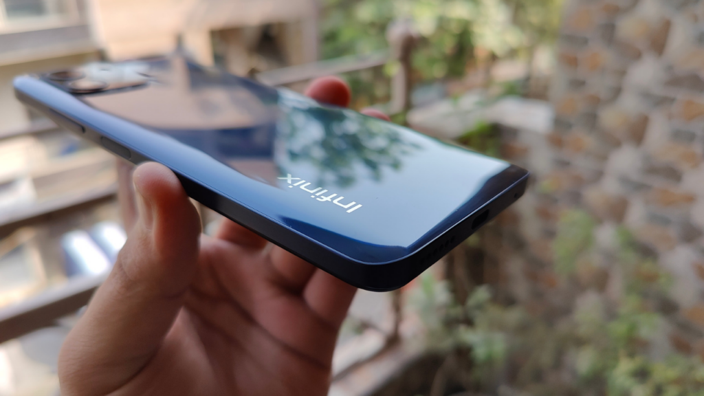 The design of the Infinix Hot 11 2022 is nothing unique but it feels well built in the hand. Even though it’s all plastic, the rear has been given a mirror finish which is clearly a fingerprint magnet. However, the flat sides add to the grip of the device.