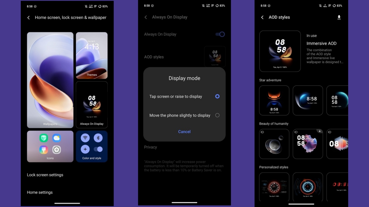 Speaking of the Always-on display, it turned out to be a disappointment as you can’t keep it turned ON at all times, even though the device employs an AMOLED panel. You can only turn it on using one of two ways: either pick your phone or tap the display to see it, or move your phone slightly to make it appear.