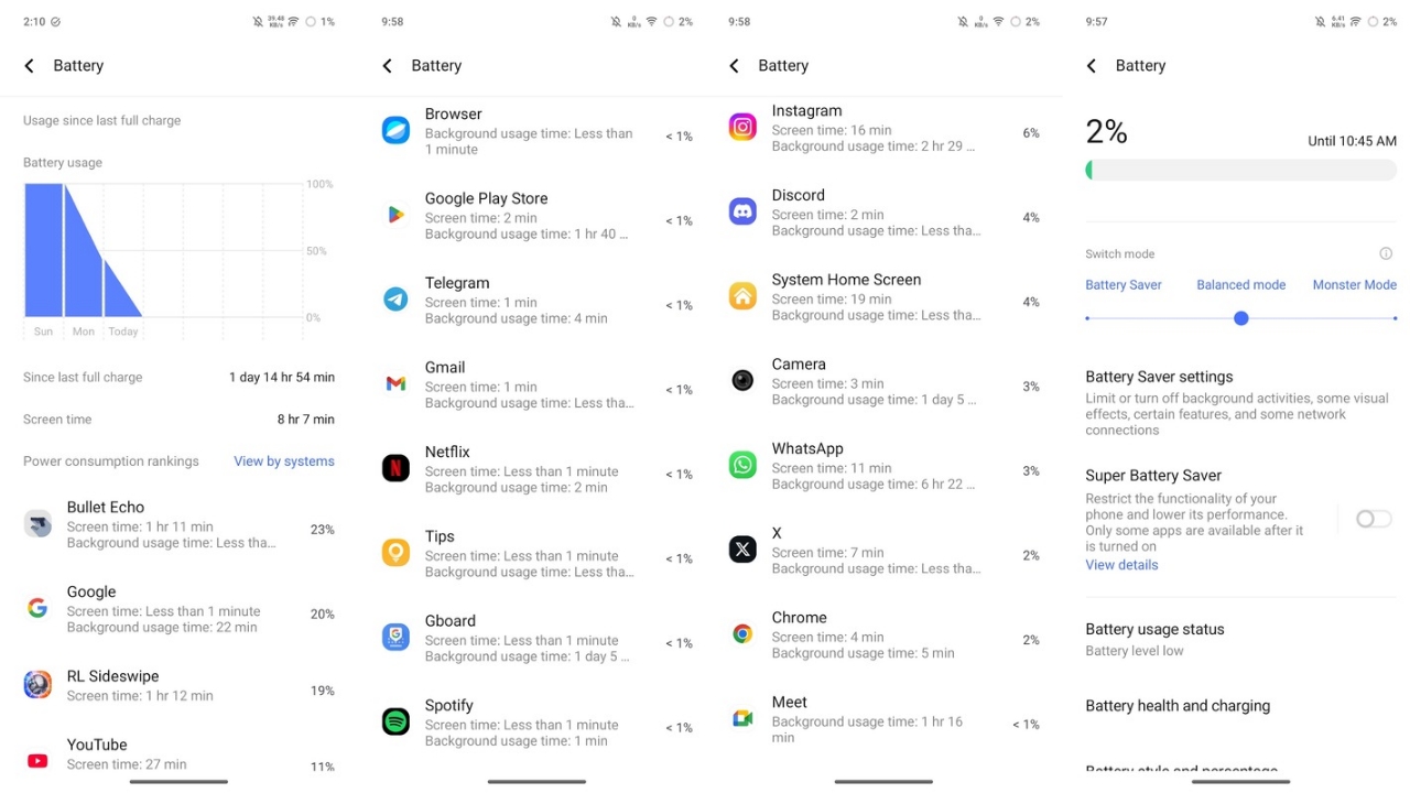 To push it to its limits, I did 120fps gaming on the device with the highest touch sampling rate, yet I still couldn’t kill it in a day. The device consistently gave me unbelievable numbers. It lasted me 1 day and 15 hours with slightly over 8 hours of screen-on time, out of which about 6 hours accounts for gaming which is beyond outstanding.