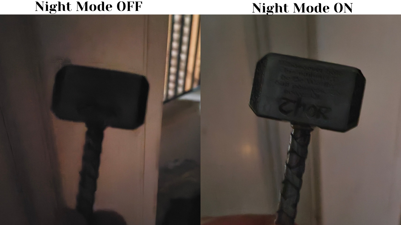 For shots in low light, the camera struggles to focus on the subject, and there’s hardly any detailing, but once you turn on night mode, things do get better to some extent.