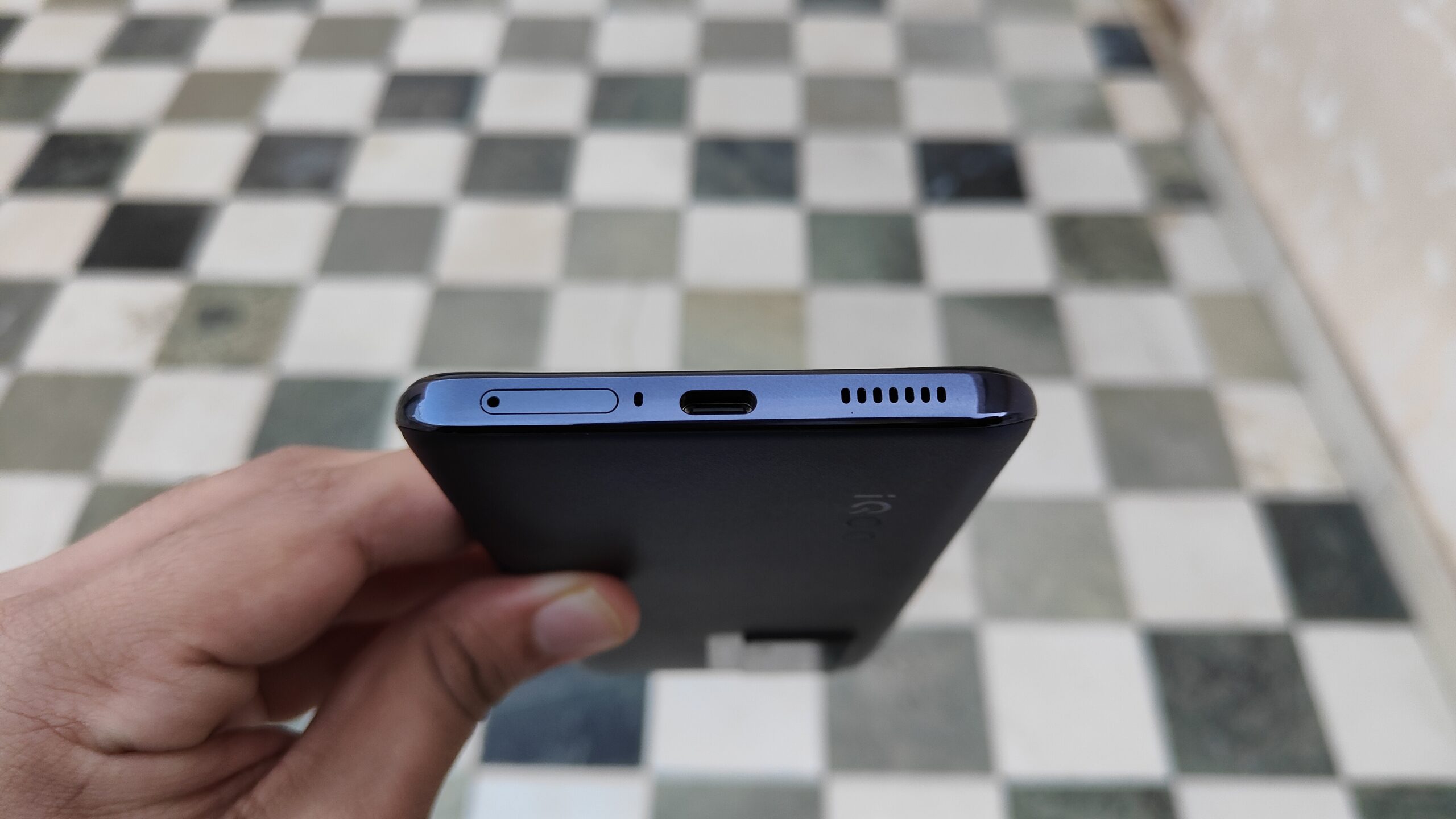 You have a 3.5mm Headphone jack and a mic on the top spine. There’s a mic, a SIM tray, a Type-C port, and a speaker on the bottom. There’s also a speaker on the top, and fortunately, this stereo speaker setup sounds much better than the mono speaker we had on iQOO Z3. It has a slightly muffled sound profile but is louder and gives an immersive experience compared to Z3. Moreover, there’s also a better haptic linear motor than the Z3 which mostly rattled and didn’t feel great at all. With Z5, things get much better, and the haptic motor feels really good.
