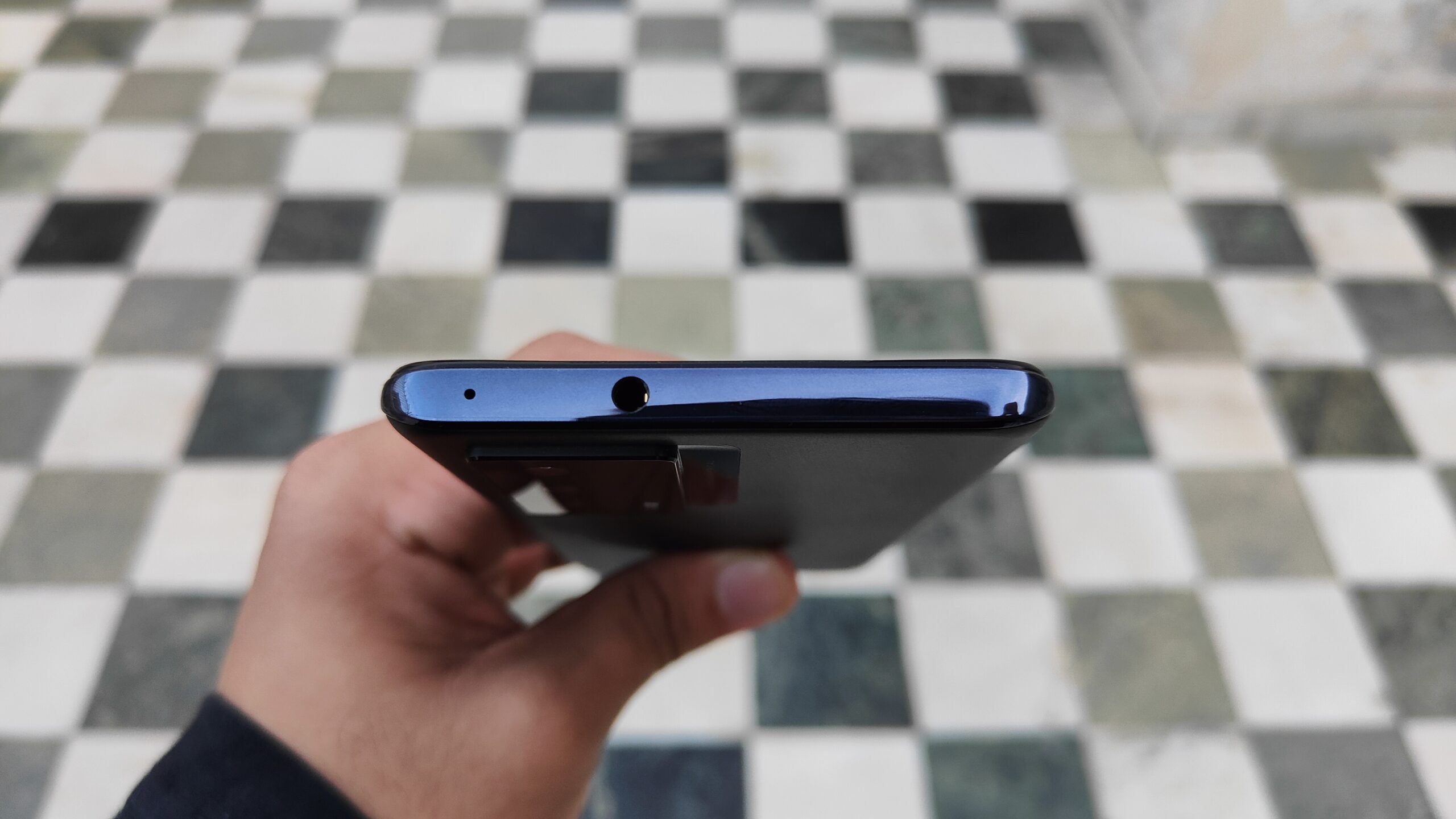 There’s nothing on the left, while on the right, you get the power button that also doubles as a fingerprint sensor and the volume buttons. The buttons aren’t very clicky but will do the job. As for the fingerprint, it’s quick and accurate in detecting fingerprints and unlocks the device instantly. The back panel and frame is made of plastic. However, the rear has a textured finish, making it look and feel premium. And it is definitely better in preventing fingerprints which the iQOO Z3 failed at. In comparison with the competitors such as the Galaxy M32, we feel this design is balanced and is more appealing at the same time.