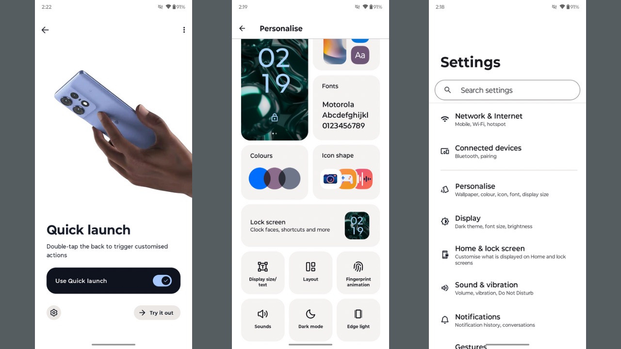 I do appreciate the new approach towards bringing essential customisation options to the user interface, such as custom fonts for the lock screen clock, themes, fingerprint animations, edge notification light, sidebar, and various gestures such as chop twice for a flashlight or double twist to open camera, and many more.