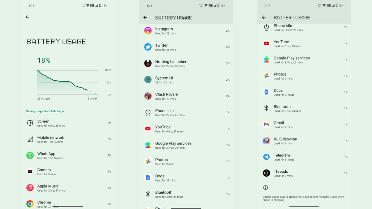 The battery backup on the device doesn’t disappoint, as I was consistently getting 7 hours of screen-on time and sometimes beyond that. My usage included some gaming, chatting, calling, streaming, browsing social media and surfing Chrome. That’s certainly excellent battery backup and the Phone (2) can easily get you through a day without breaking a sweat.