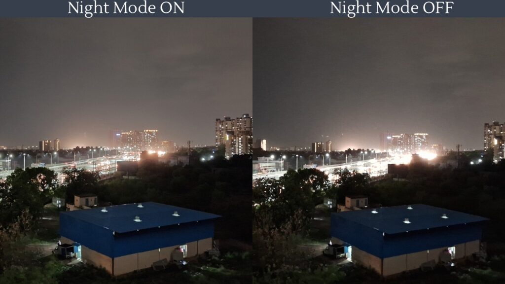 In night shots, the detailing goes for a toss with a lot of noise. There’s also a lot of bloom with lights, and turning on Night mode helps with all these things.