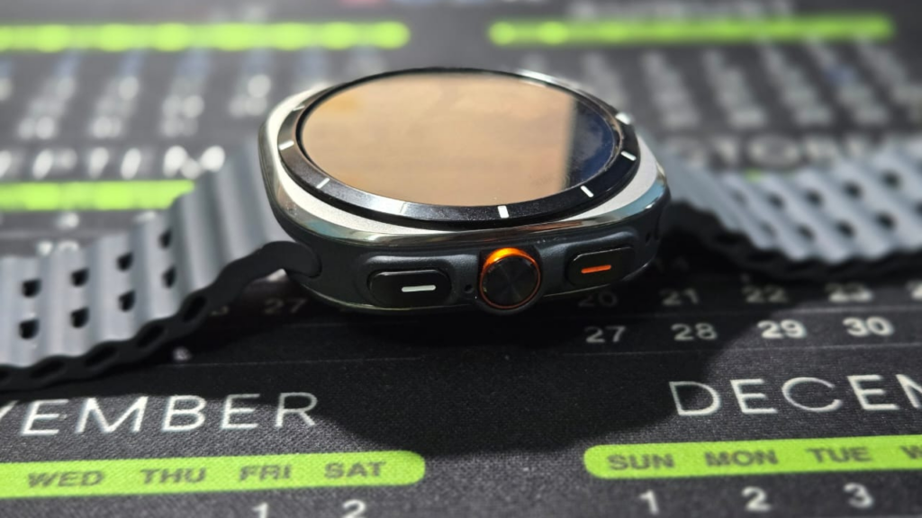 The absence of a physical rotating bezel is compensated for by a digital one in Galaxy Watch Ultra. You can drag your finger along the screen’s EDGE to navigate menus. Samsung has also enhanced the haptic feedback to mimic the feeling of rotating a physical bezel, improving the user experience despite the lack of a physical rotating bezel.