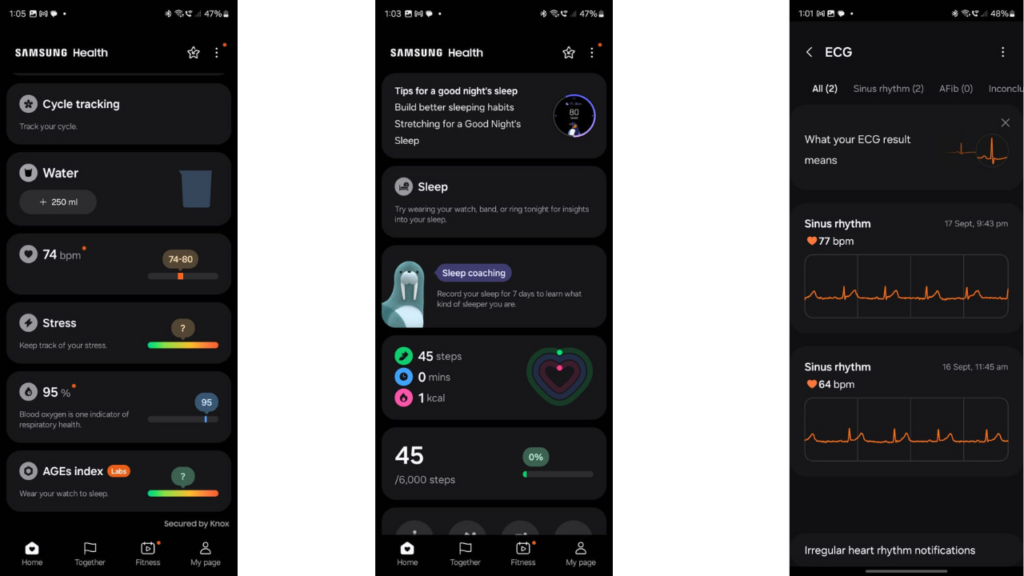 For women, the Samsung Health app offers menstrual cycle tracking. The Watch Ultra also provides irregular heart rhythm notifications (IHRN), which can alert users to atrial fibrillation (AFib) risks.