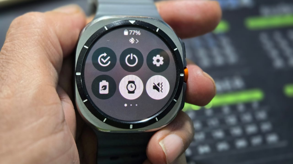 The Galaxy Watch Ultra’s controls combine physical buttons and touchscreen navigation. The top button returns you to the main watch face, while the bottom button acts as a back function. The new Quick button can be customized for various tasks, adding more versatility.