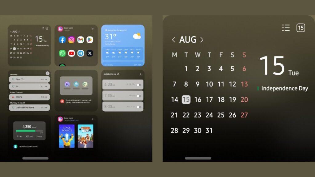 One UI is being optimized yearly for foldables; this year is no different. The device comes pre-loaded with One UI 5.1.1 and July 2023 patch. Weirdly, it hasn’t received the August 2023 patch yet, considering Samsung is mostly quick with its security patch releases. However, reports state that the rollout has begun in the US, so it could arrive here in India any day now. Furthermore, the version has new clock fonts for the lock screen over One UI 5.1 and also has a new clock style for the Always-on display.