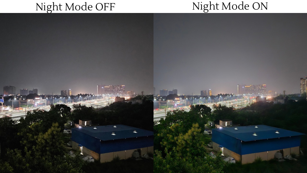 Night shots actually look pretty impressive with Night mode ON. While the colours are muted with night mode off, the exposure levels increase with decent colours and increased sharpness with night mode turned ON. Selfies have decent detailing, however, colours and dynamic range can take a hit in some cases.