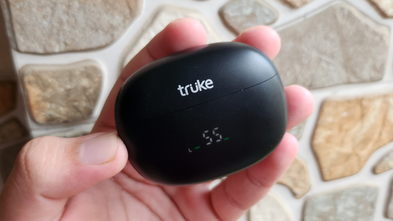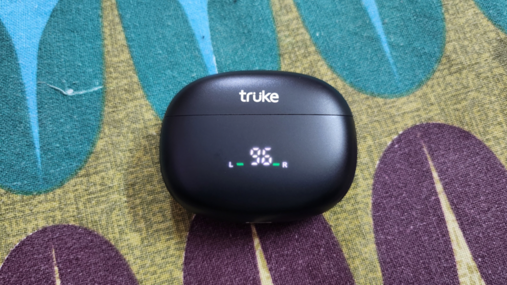 The Truke Buds Pro has a case that has a usual cobble shaped design but then the differentiating factor is the LED-based battery indicator which shows how much juice is left in the case. Once you put the earbuds in the case, there’s a green indicator showing that the left and right earbuds are charging with a percentage in between.