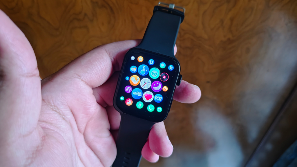 The Urban Fit S has been made using Zinc Alloy casing, and the company claims that it has a soft, skin-friendly silicone strap. There’s a button to the right alongside a crown and a speaker at the left. The square-shaped dial definitely resembles the Apple watch in all ways. Moreover, the crown has a red circle inside the crown which adds to the looks of the watch. The button on the right isn’t very clicky though and doesn’t give proper feedback when you press it. Overall, it looks premium when one is wearing it.