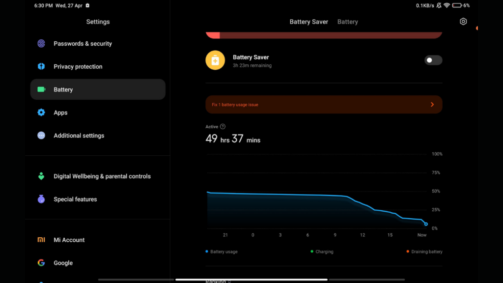 As for the battery backup, the Pad 5 is one of the best tablets out there with excellent battery life. During my usage which included a lot of typing and browsing on Chrome, texting, video streaming and other social media browsing, the tablet gave me 9.5 hours to 10 hours of Screen-on time.